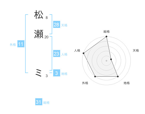 松瀬 ミさんの総格は31画の5点!