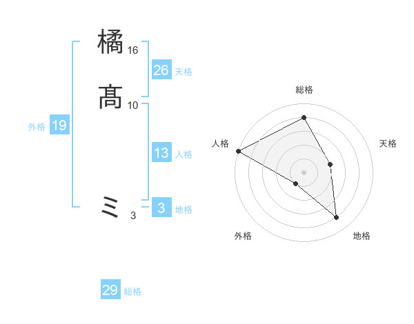 橘髙 ミさんの総格は29画の4点!
