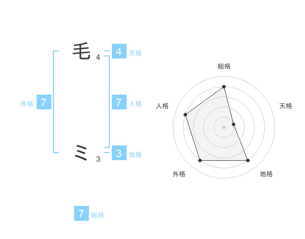 毛 ミさんの総格は7画の4点