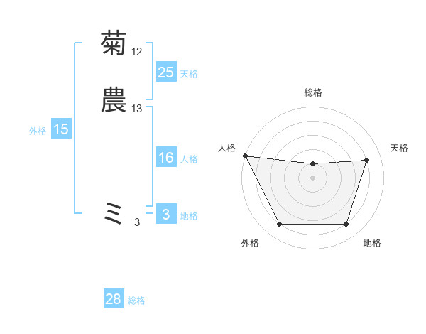 菊農 ミさんの総格は28画の1点!