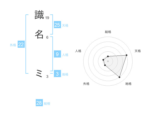 識名 ミさんの天格は25画の4点!