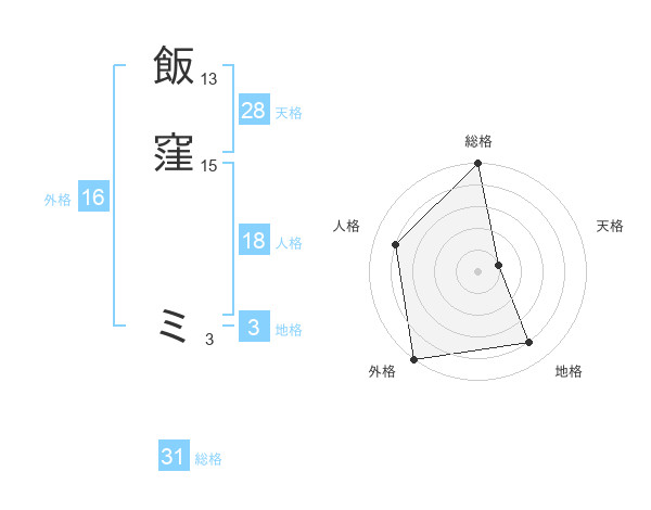 飯窪 ミさんの総格は31画の5点!