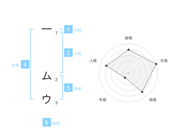 一 ムウさんの地格は5画の4点!