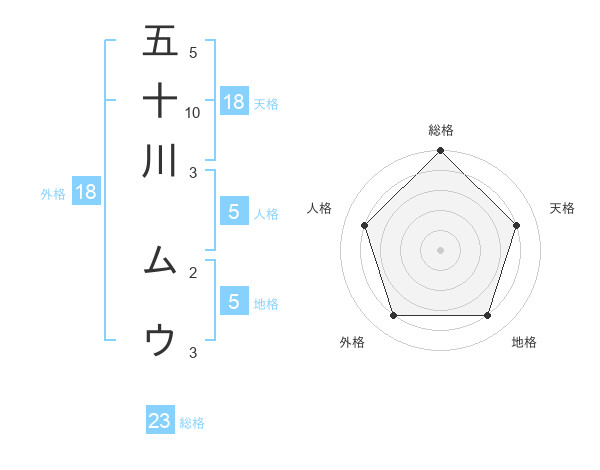 五十川 ムウさんを姓名の画数から五運を鑑定