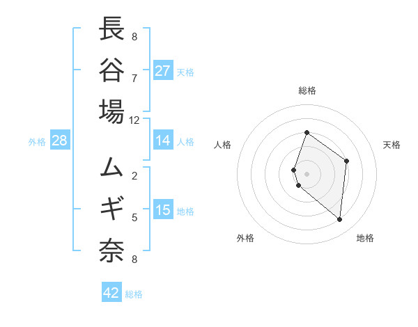 長谷場 ムギ奈さんを姓名の画数から五運を鑑定