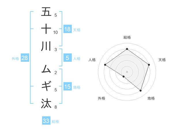 五十川 ムギ汰さんを姓名の画数から五運を鑑定