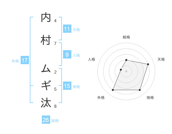 内村 ムギ汰さんを姓名の画数から五運を鑑定