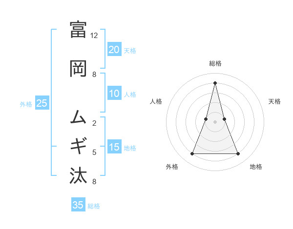富岡 ムギ汰さんの総格は35画の4点!