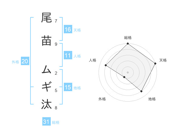 尾苗 ムギ汰さんを姓名の画数から五運を鑑定