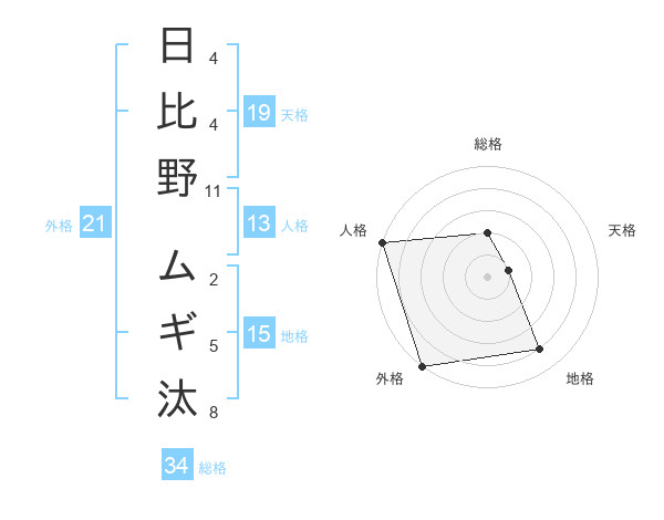 日比野 ムギ汰さんの天格は19画の1点