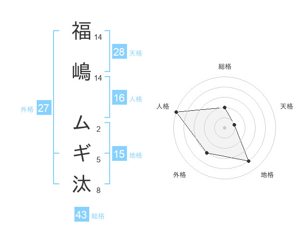 福嶋 ムギ汰さんを姓名の画数から五運を鑑定