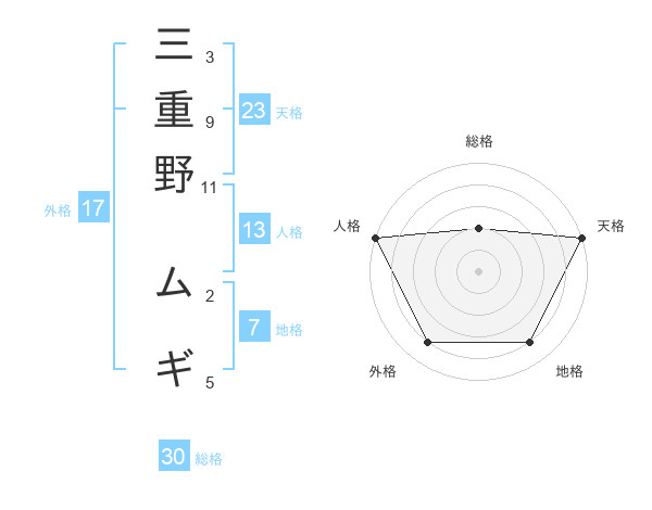 三重野 ムギさんを姓名の画数から五運を鑑定