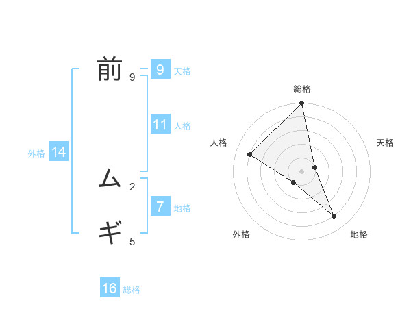 前 ムギさんの総格は16画の5点!