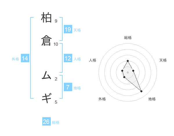 柏倉 ムギさんを姓名の画数から五運を鑑定