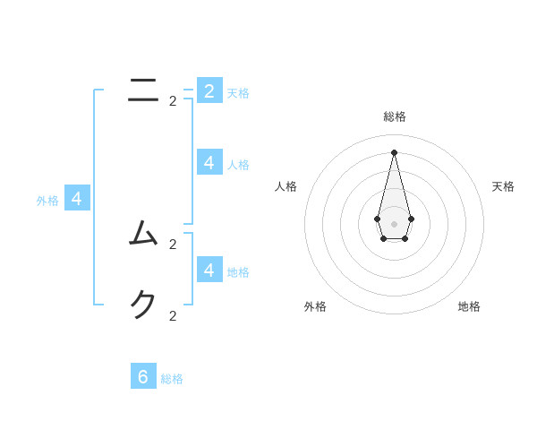 二 ムクさんの総格は6画の4点!