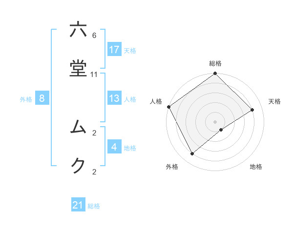 六堂 ムクさんの天格は17画の4点!