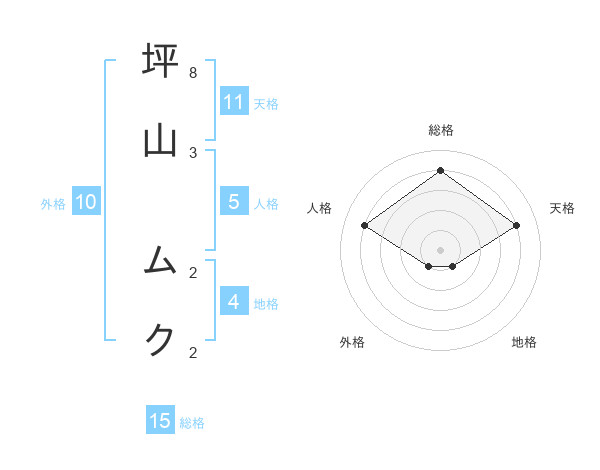 坪山 ムクさんの天格は11画の4点!