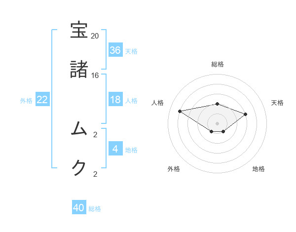 宝諸 ムクさんの天格は36画の3点!