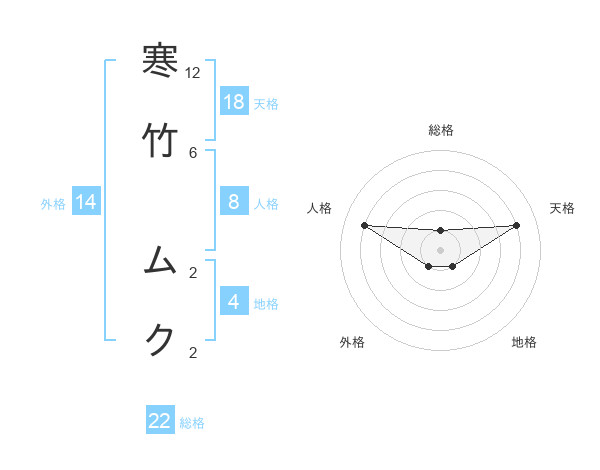 寒竹 ムクさんの天格は18画の4点!