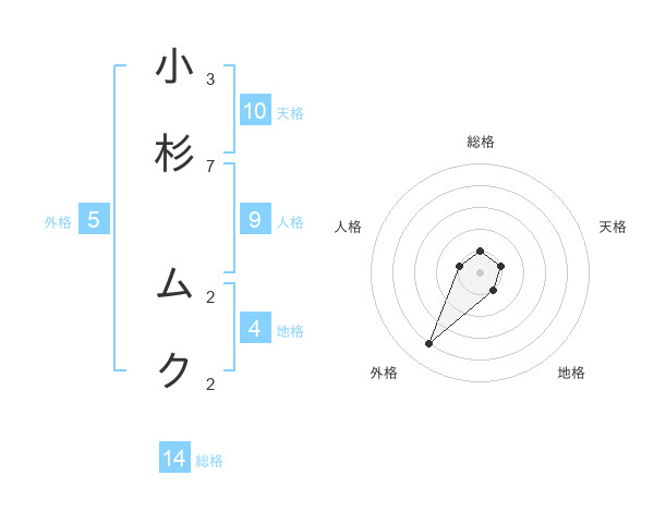 小杉 ムクさんを姓名の画数から五運を鑑定