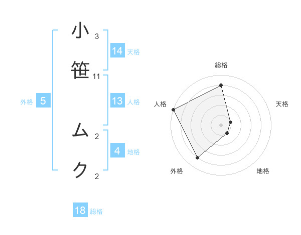 小笹 ムクさんを姓名の画数から五運を鑑定
