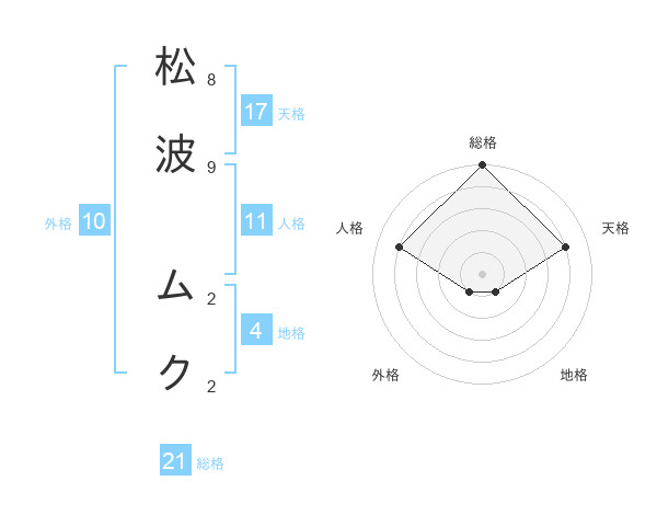 松波 ムクさんの天格は17画の4点!