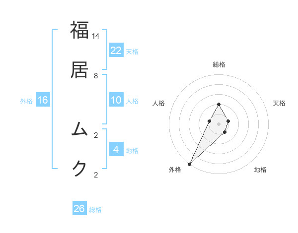 福居 ムクさんの総格は26画の2点!