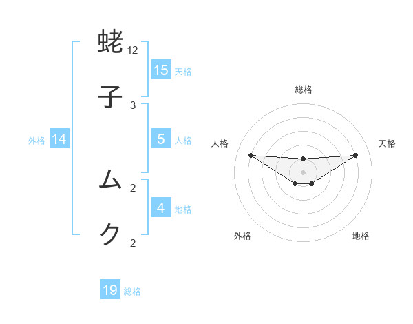 蛯子 ムクさんの天格は15画の4点!