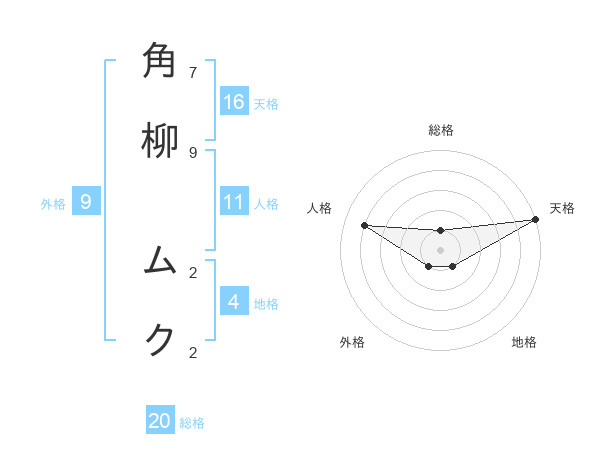 角柳 ムクさんの総格は20画の1点!