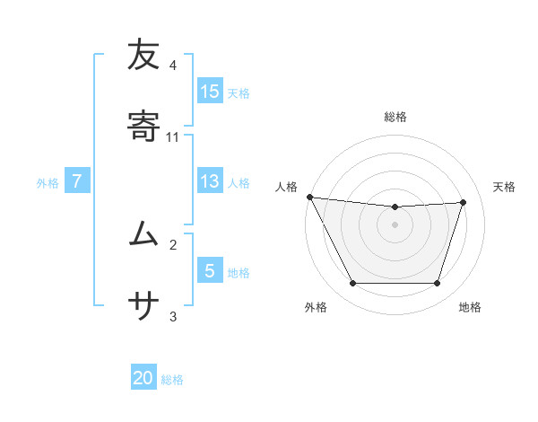 友寄 ムサさんを姓名の画数から五運を鑑定