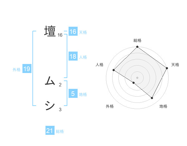 壇 ムシさんの総格は21画の5点!