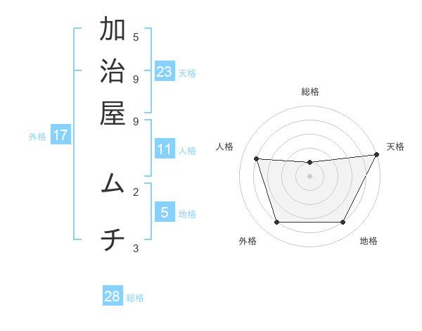 加治屋 ムチさんを姓名の画数から五運を鑑定