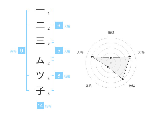 一二三 ムツ子さんを姓名の画数から五運を鑑定