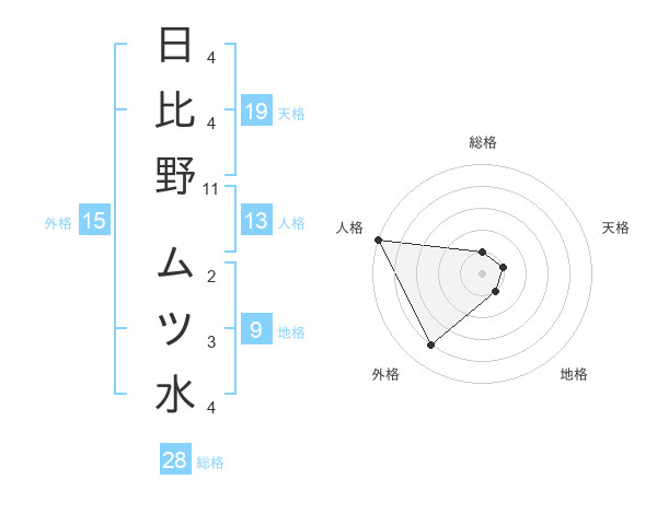 日比野 ムツ水さんを姓名の画数から五運を鑑定