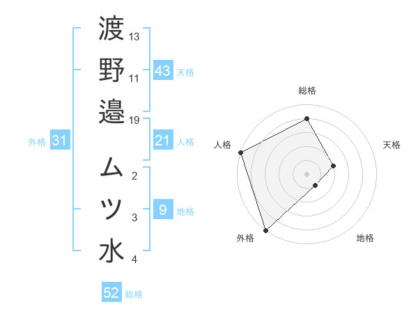 渡野邉 ムツ水さんを姓名の画数から五運を鑑定