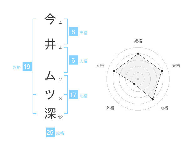 今井 ムツ深さんを姓名の画数から五運を鑑定