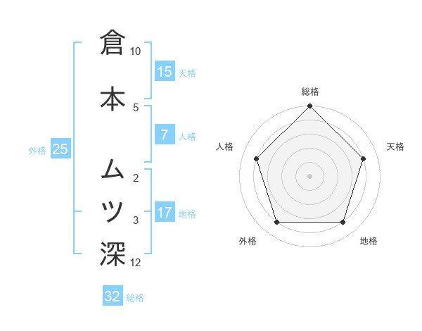 倉本 ムツ深さんの総格は32画の5点