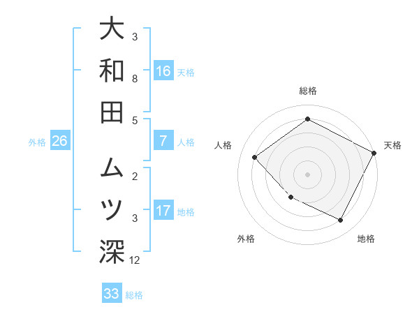 大和田 ムツ深さんを姓名の画数から五運を鑑定