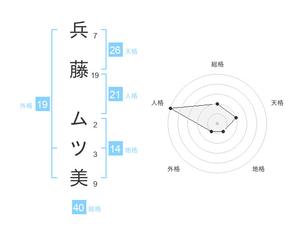 兵藤 ムツ美さんを姓名の画数から五運を鑑定