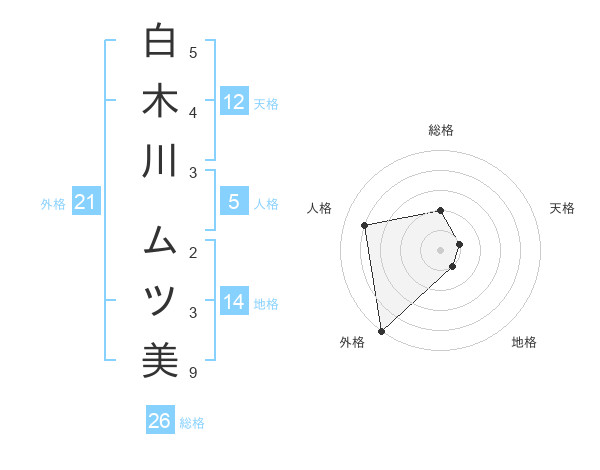 白木川 ムツ美さんを姓名の画数から五運を鑑定