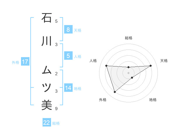 石川 ムツ美さんを姓名の画数から五運を鑑定