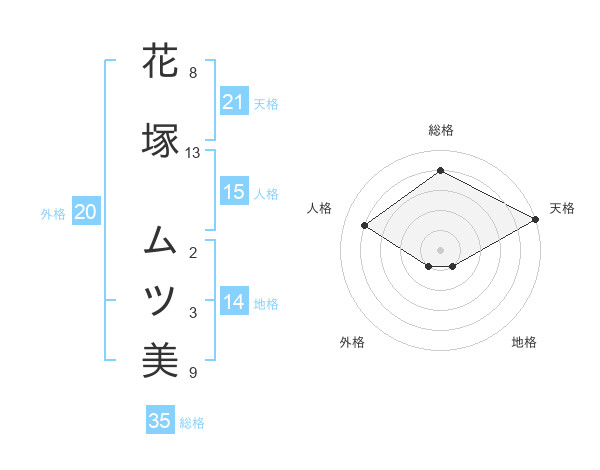 花塚 ムツ美さんの総格は35画の4点!
