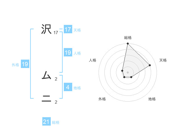 沢 ムニさんの天格は17画の4点!