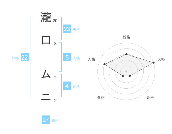 瀧口 ムニさんを姓名の画数から五運を鑑定