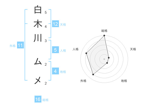 白木川 ムメさんの総格は16画の5点!