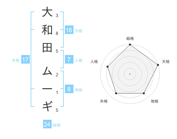 大和田 ムーギさんを姓名の画数から五運を鑑定