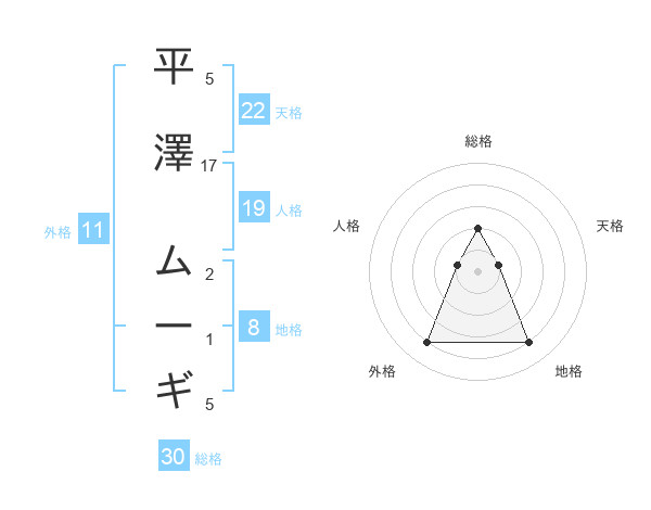 平澤 ムーギさんを姓名の画数から五運を鑑定