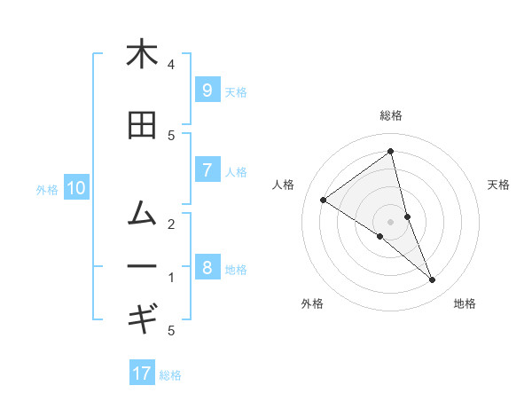 木田 ムーギさんを姓名の画数から五運を鑑定