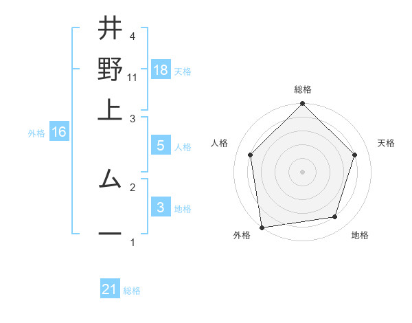 井野上 ムーさんを姓名の画数から五運を鑑定