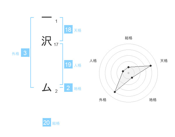 一沢 ムさんの総格は20画の1点!